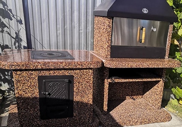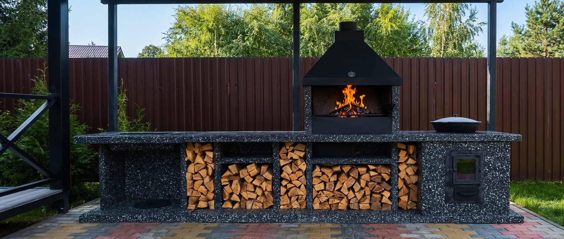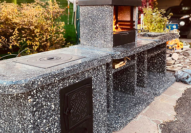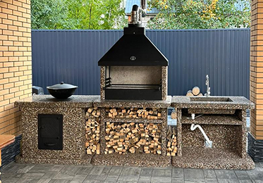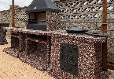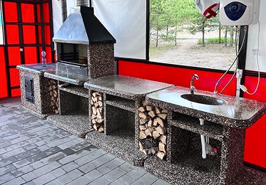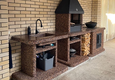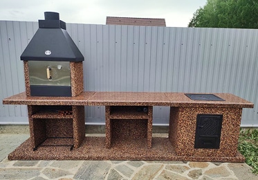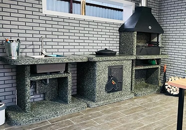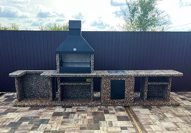 Разделочный стол для уличного гриля — прочность и практичность! Габбро-диабаз и змеевик делают столешницу устойчивой к жиру, огню и влаге.Фактура...