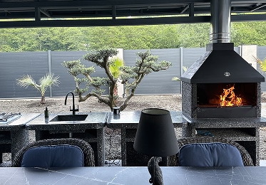 Разделочный стол для смелых экспериментов на открытом воздухе! Яшма в столешнице устойчива к высоким температурам, жиру и маслам, а ударопрочность...