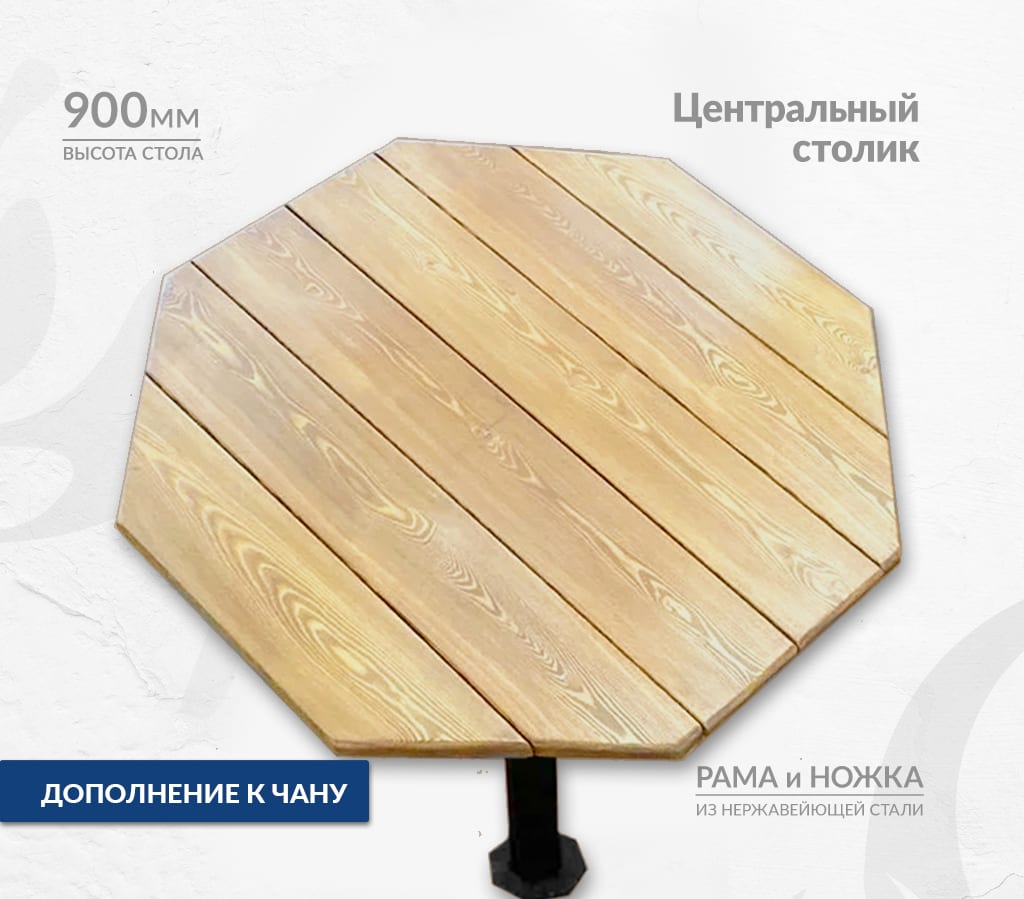 Съемный центральный столик из лиственницы с рамой и ножкой из нержавейки